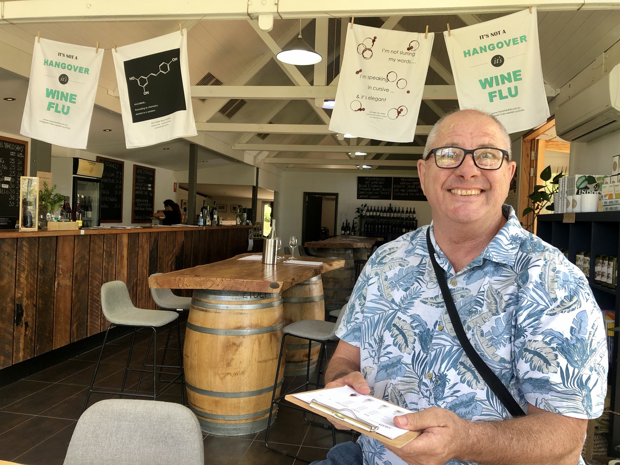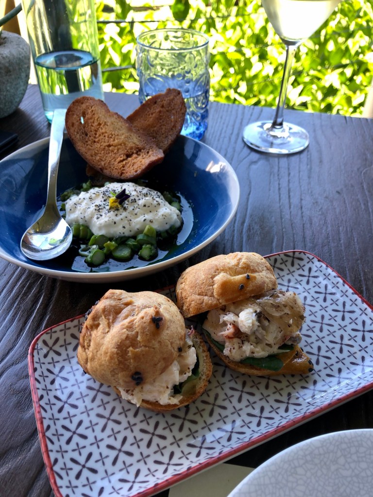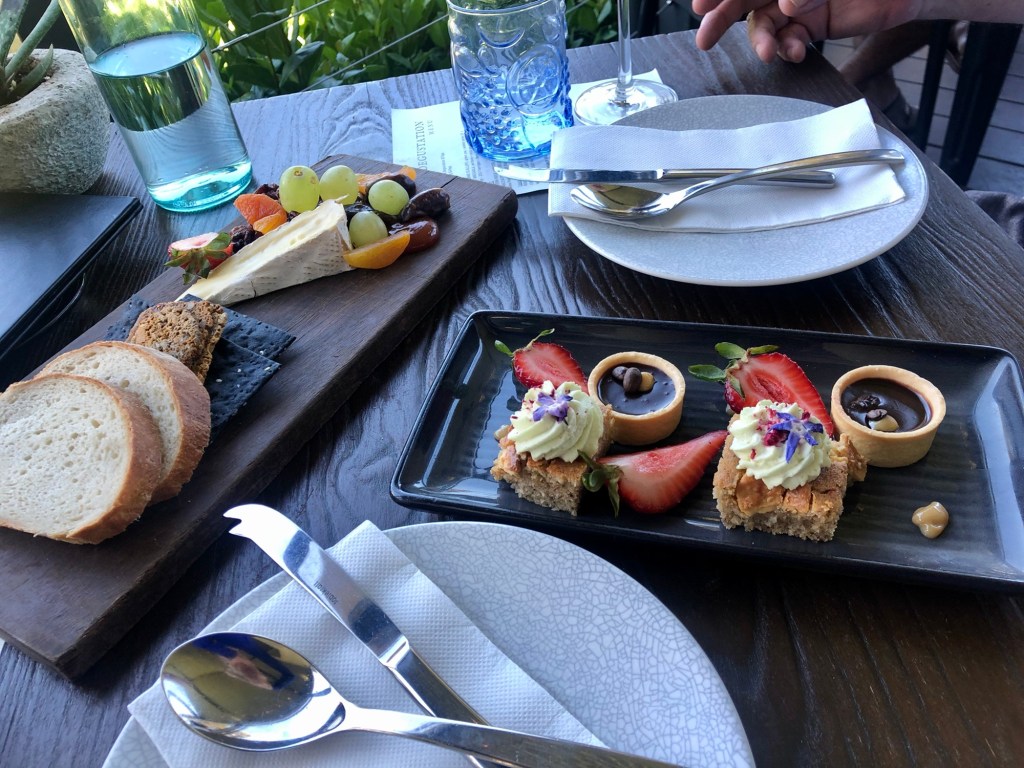 We arrived a little early for our booking so we could taste some wines to work out which one I’d have with lunch. Mick chose the option that matched the five courses with five different wines. As the driver, one glass for me was sufficient. We were very impressed by the quality of the wines at this vineyard – both the whites and the reds that we tried. They had very ‘French’ characteristics and we bought several bottles to try later on during our trip.