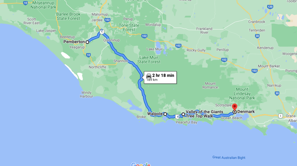 Mick has asked me several times today, “Why are we staying in Denmark?” And I can’t really say. Months ago when I was researching this trip, Denmark was recommended as a stop off. So was Walpole (but only for morning tea). Mick had the same question for me there. “Why are we stopping in Walpole?” I replied politely, and suggested that next trip he might like to have some input into what we do and where we go.