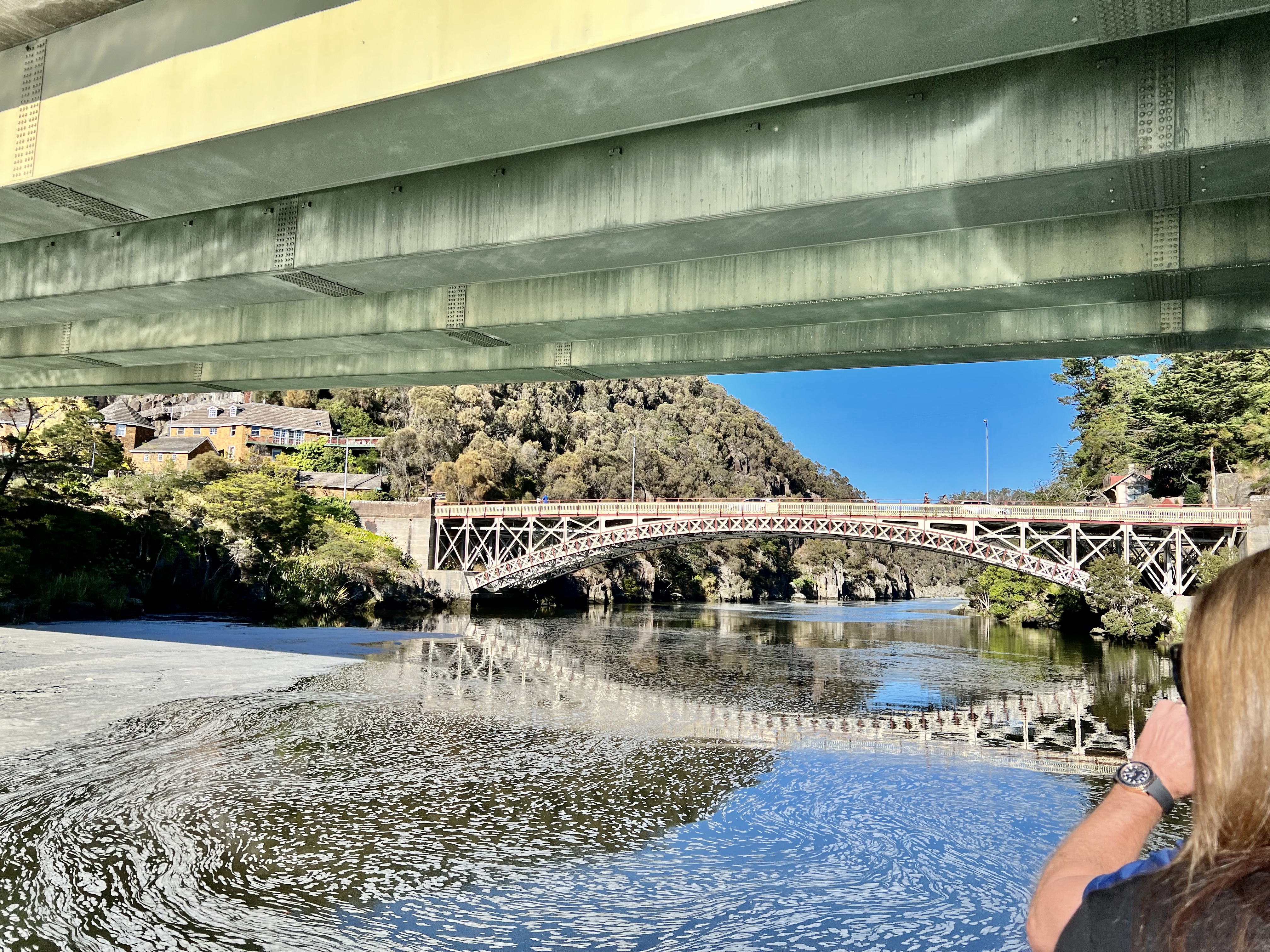 Once we passed beneath the bridge, the skipper skilfully turned the boat around for our return trip. The Tamar River is at its deepest at this point – 55 metres, and it was here we experienced the only bumpiness due to very fast flowing tidal currents beneath the water. This swift water energy has been trialled with an energy turbine.