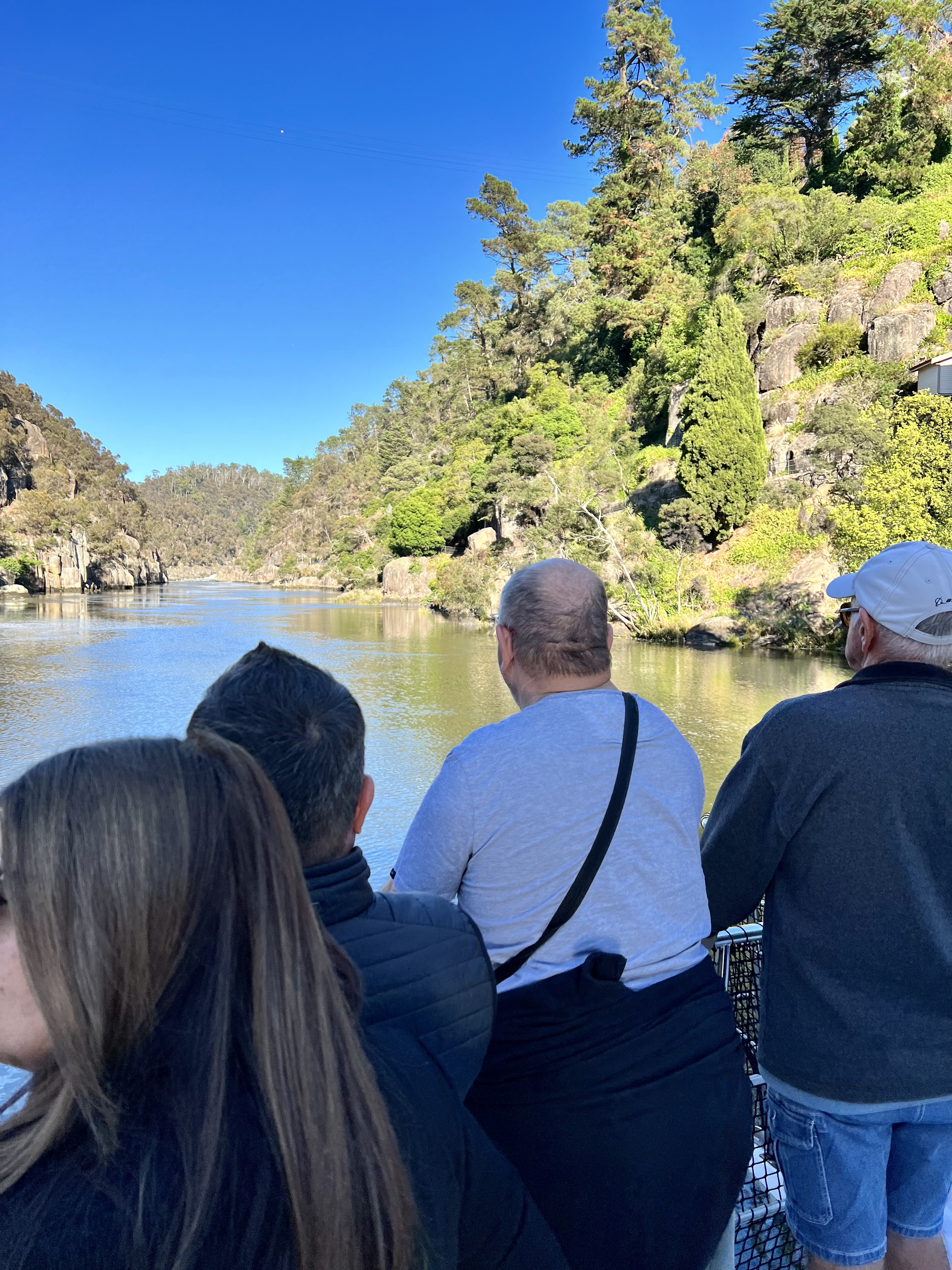 We started by going under Kings Bridge and on to the Cataract Gorge. Mick got a great spot on the front of the boat, along with a few other brave souls.