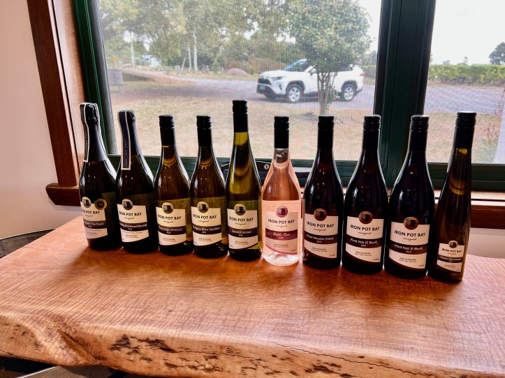 We had tasted the Iron Pot Bay Pinot Grigio on our boat tour a few days earlier. But as Mick said, it would be unlikely that anyone would buy wine following that tasting. That is not to take away from the wines we were given to taste, it was more about the plastic thimble like glasses we had, and the very quick presentation given by a lovely young girl who we thought would have preferred to be anywhere else at the time.