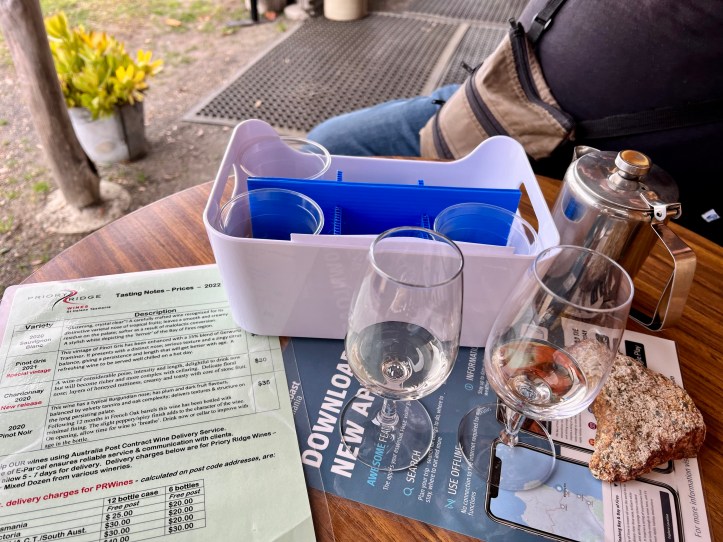 We both really liked the Chardonnay, but restricted ourselves to only one bottle (the Pinot Noir) – as we have only a week to go, and far too many bottles already in the car.