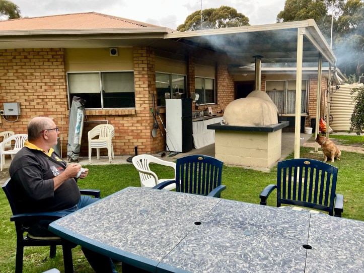 We tasted the wine sitting around the family’s outside table, while we could smell the smoke from the wood fired pizza oven that was being prepared for the family’s dinner.
