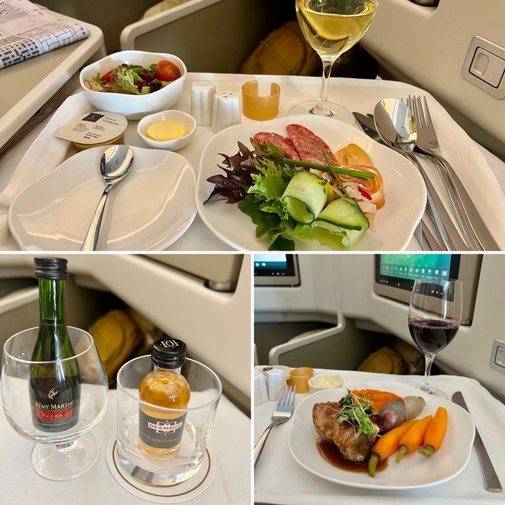 I was surprised we boarded about 45 minutes before departure, but soon realised why. The Business Class guests are treated to a selection of wines and cocktails while they wait. We also had to look at the menu and make our selections for the first meal for the trip. Oh, and we had to pair the wines with each course of course!