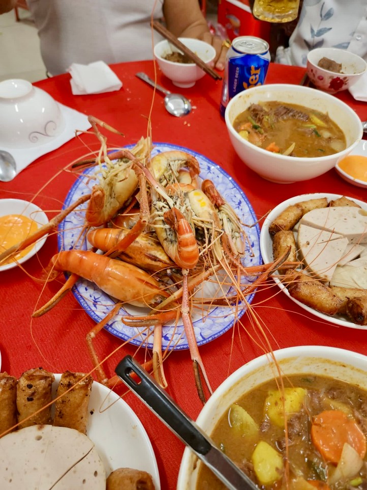 Troy had told Tien that my son’s favourite dish was Bo Koh, so that was served along with fresh baguettes and several other dishes – spring rolls, pork sausage (my term), rice, sticky rice and freshly cooked (huge) prawns, where it was expected that you ate pretty much everything except the shell.
