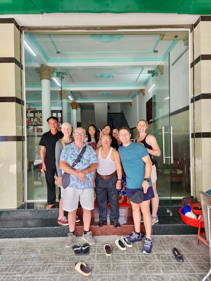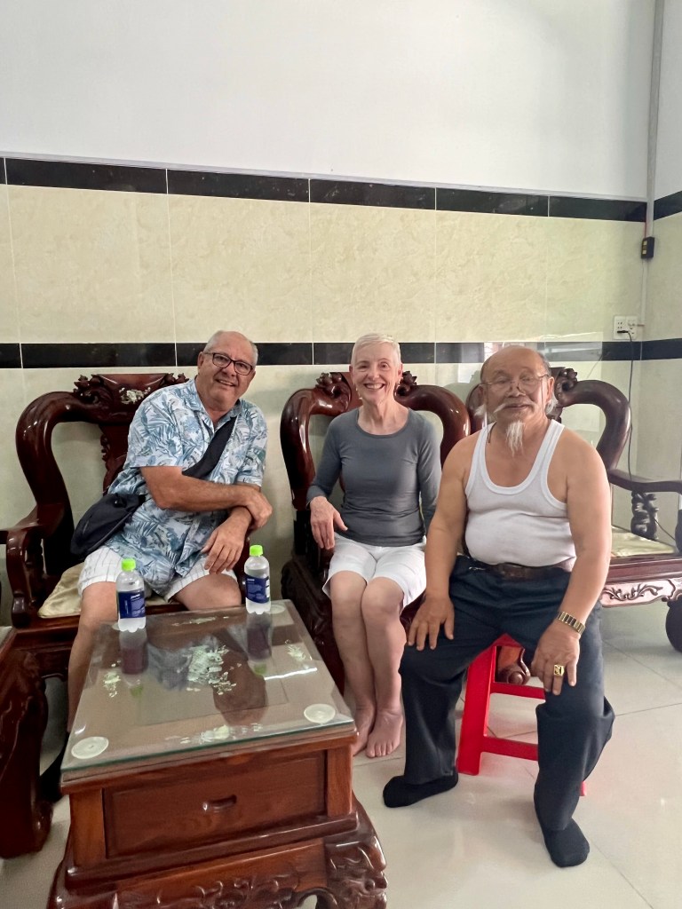 There was only one mishap here, and that involved Mick. He was sitting on one of those small plastic stools during lunch, and bent down to pick up a lost serviette, and unfortunately toppled backwards onto the floor. The commotion raised everyone’s attention, and the youngest family member who was aged 12 months got such a fright she started bellowing. But good on Mick; he picked himself up, put on a brave face and gave the crowd a happy wave. Tien then brought Mick a “proper” chair for the rest of our stay.