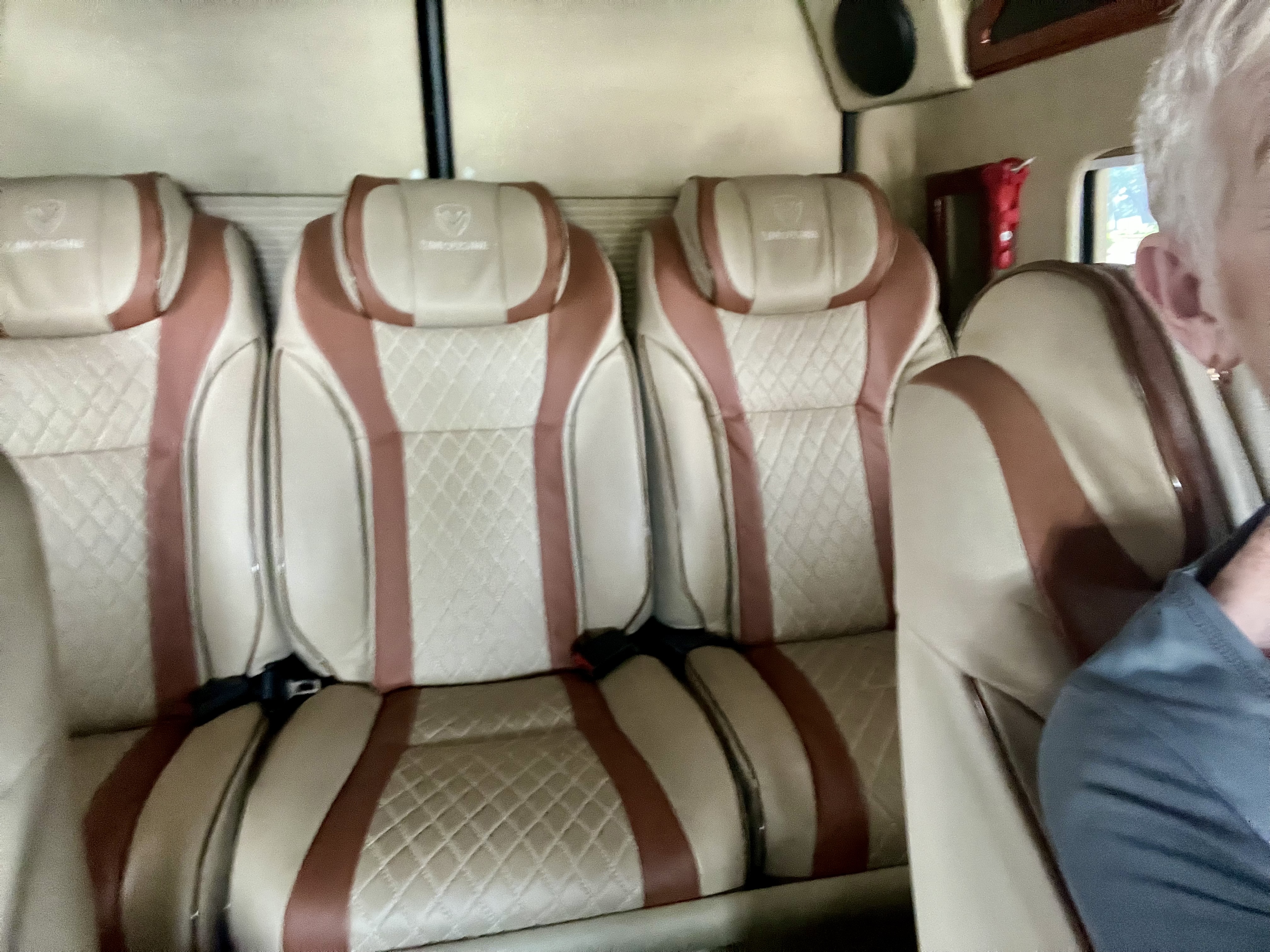 Mick looks a little uncertain in this photo – but we were very comfortable indeed. The seats even had a massage feature should we have wished to indulge.