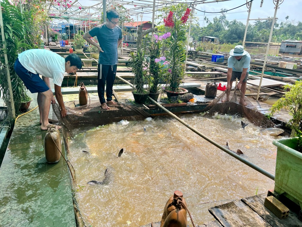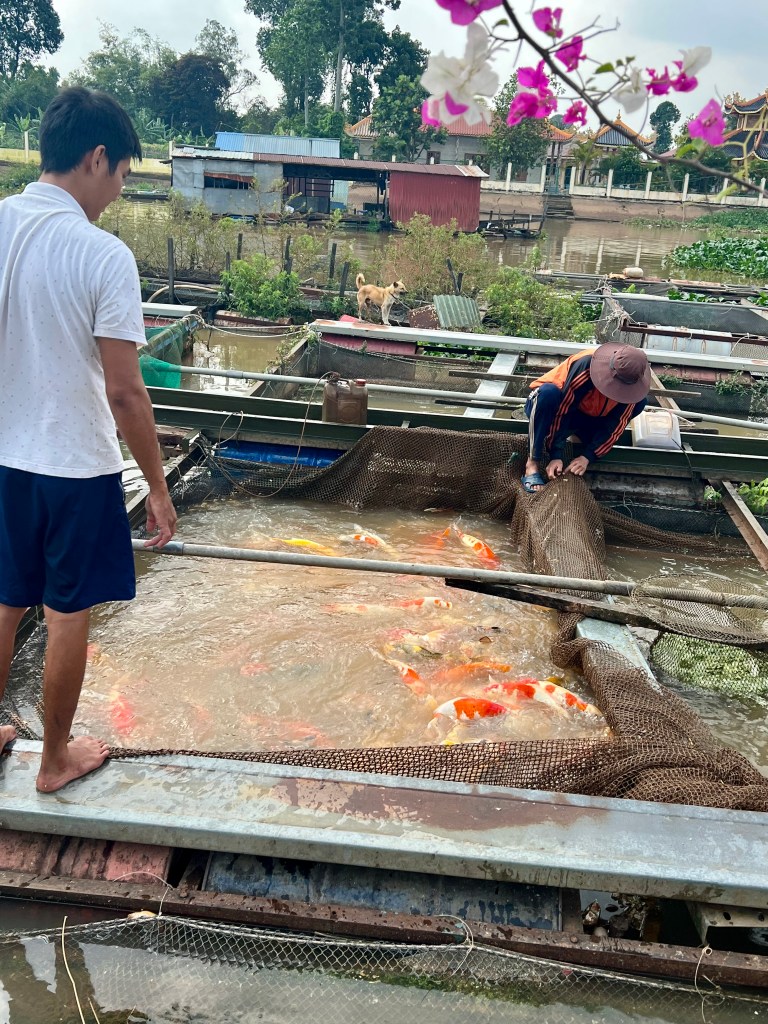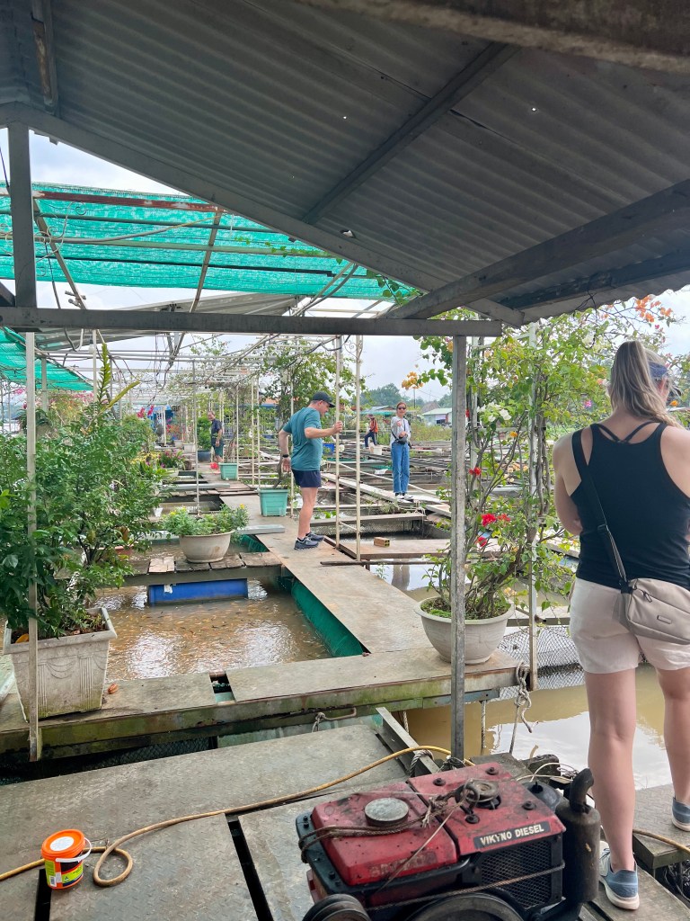 We had no idea what we were in for. Our tour guide and driver navigated us “over the bridge and past the cemetery” as per the instructions where we met Sy (Anh’s father). Sy then called a boat across to collect us and take us to see his floating koi farm.
