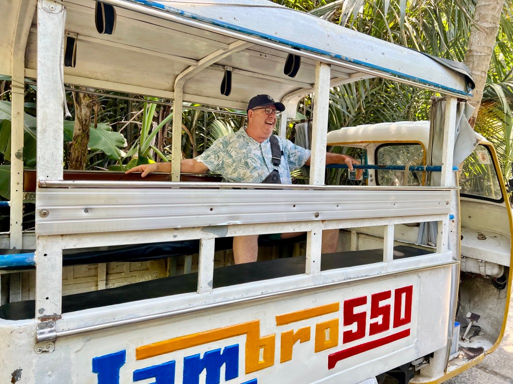 Our tour had several stops – and the degree of difficulty for entering and exiting the boat increased exponentially. Mick did extra well despite his rugby-impacted knees.