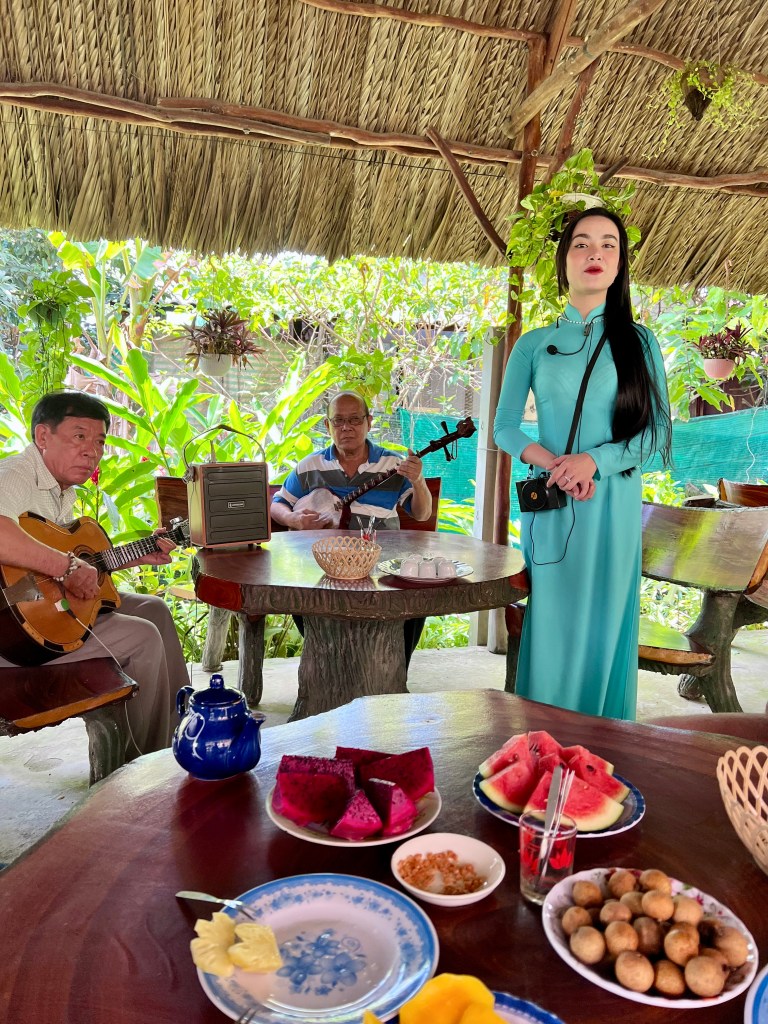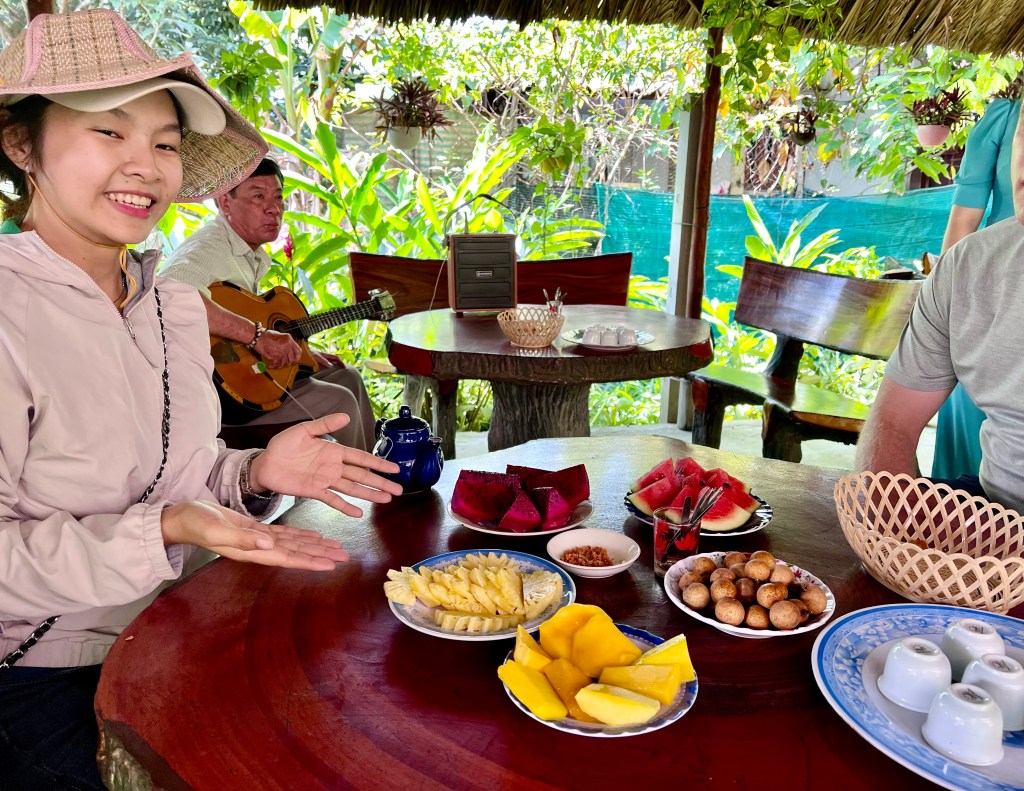 We were seated at a table with lots of fresh fruit and were told in which order we should eat them and which ones we should dip in the chilli flavoured salt. The next part though was the big surprise. One by one, we had 6 different woman sing to us in Vietnamese.