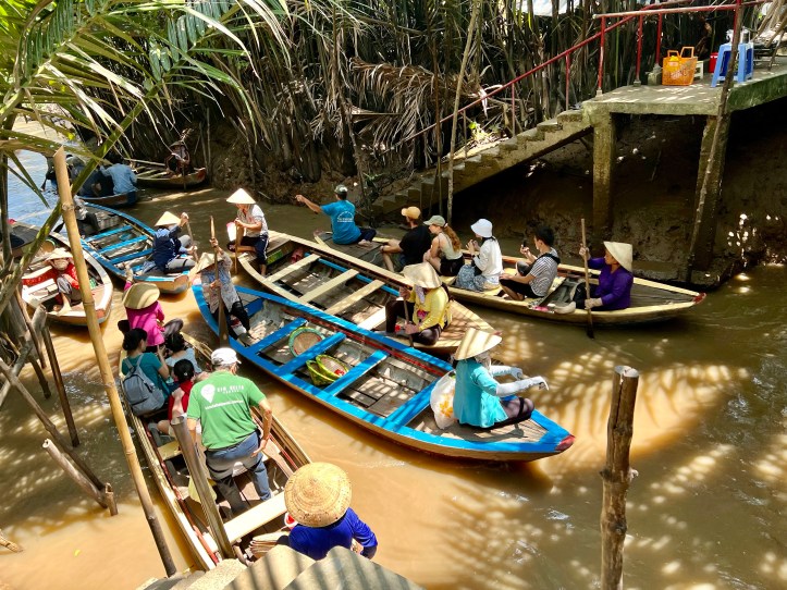 Today is Day 3 in Ho Chi Minh City and we spent the whole day on a private tour of the Mekong Delta. The weather was perfect, and the trip ‘eye opening’ in places. I am not a fan of tours you pay to go on to observe the culture and sights of other places only to find out that you’re taken somewhere to be ‘shown’ something but you’re really expected to ‘buy’ something. Even though this happened, the day was wonderful as the Vietnamese are such beautiful people.