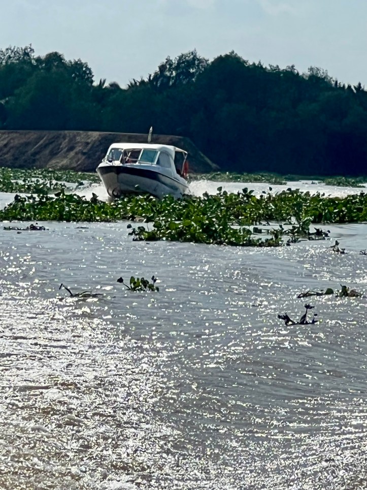 Cher had to stop the boat 4 times on our trip because the water lily which choked the river in some places, also choked the propeller. He resolved the issue by putting the engine into reverse and then we were on our way again.