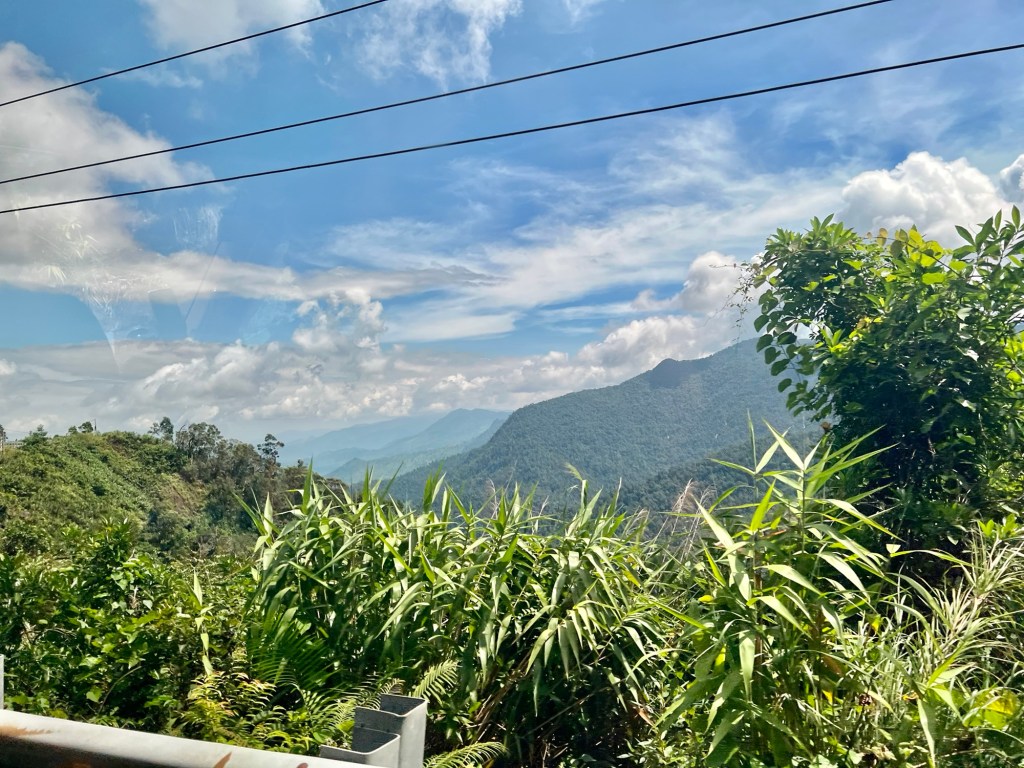 This was yet another very winding road for the first two of the three plus hours it took us to get to our next destination. We climbed higher than Dalat (1500m above sea level), passing many, many green house constructions, until it became too high. Then it was just mostly pine forest and cascading waterfalls (Mick counted over 100) – kept as a national park.