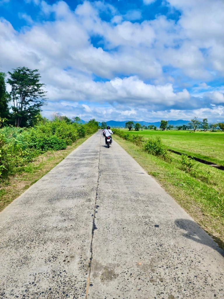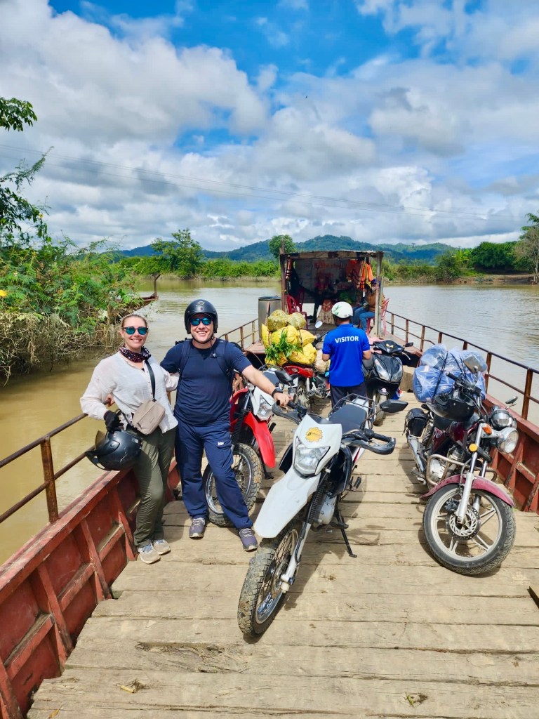 They were mostly riding on small local roads – sometimes made of concrete and other times no more than a rough dirt track. They also used local ferries to cross rivers, and their guide took them to some interesting places.