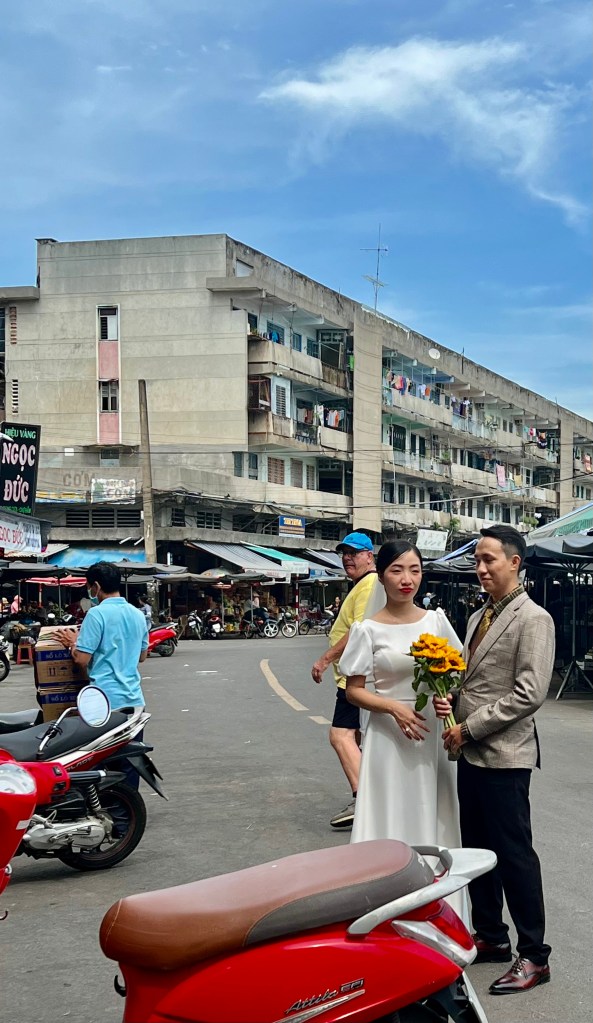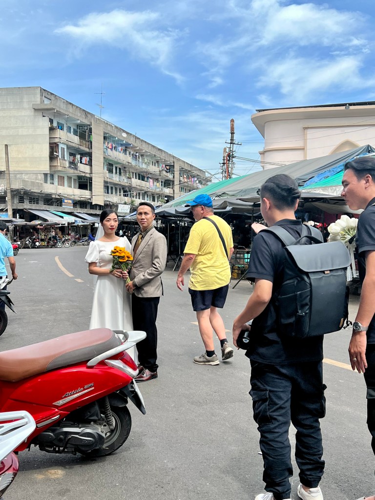 I wondered why a couple would pick this location to record their special day, considering there is a very beautiful beach about 1km away. The apartment complex in the back of the photo is a local residential area.