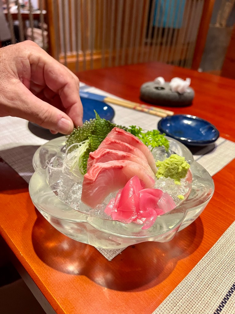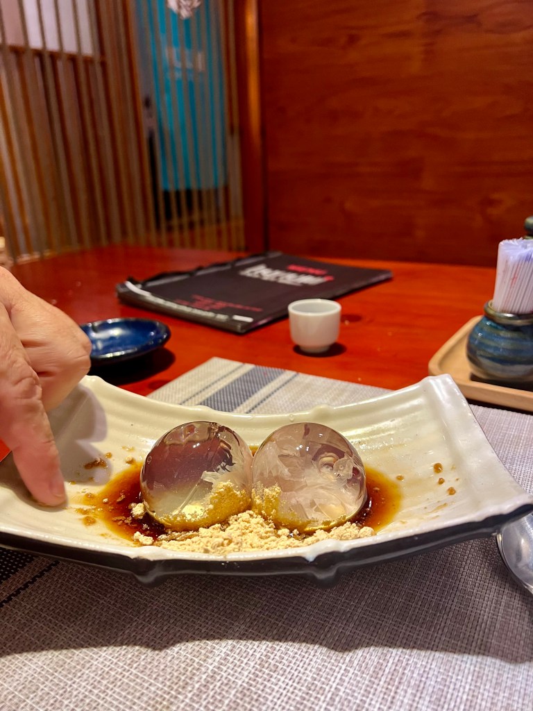 Best tempura ever, but we were unsure what the seaweed was called that we ate, but it too was delicious. For dessert I tried eyeballs.