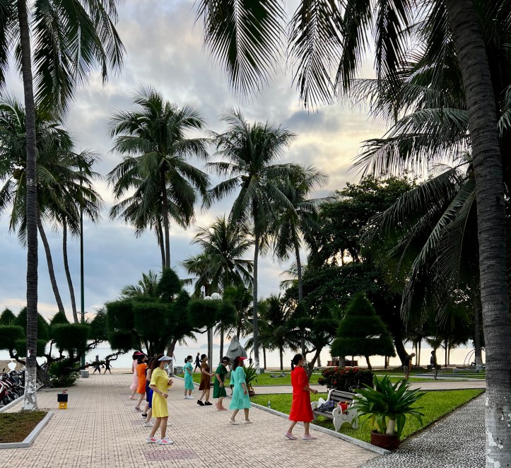 I walked in the opposite direction from yesterday, and again I spotted hundreds of people doing their exercises. This group of woman were colourfully dressed and practising a dance routine.