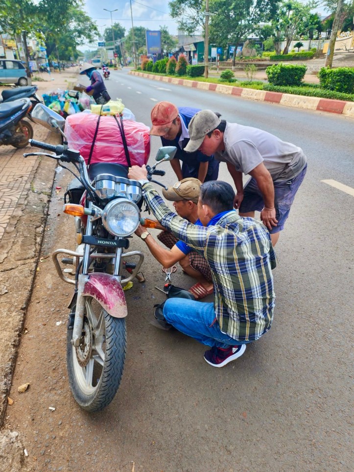 Yes, Mick was considering buying some new shoes, as the super glue repair on his shoe did not last too long. I had used Google Translate to find out how to write “glue for shoes”, and not too far from here we came across a small store that sold some hardware-type products. I showed the shop owner the screen shot and he tried to sell Mick some more super glue. When Mick shook his head, he then handed him a small tin of glue (for 25,000VND / $1.67AUD), which Mick optimistically bought.