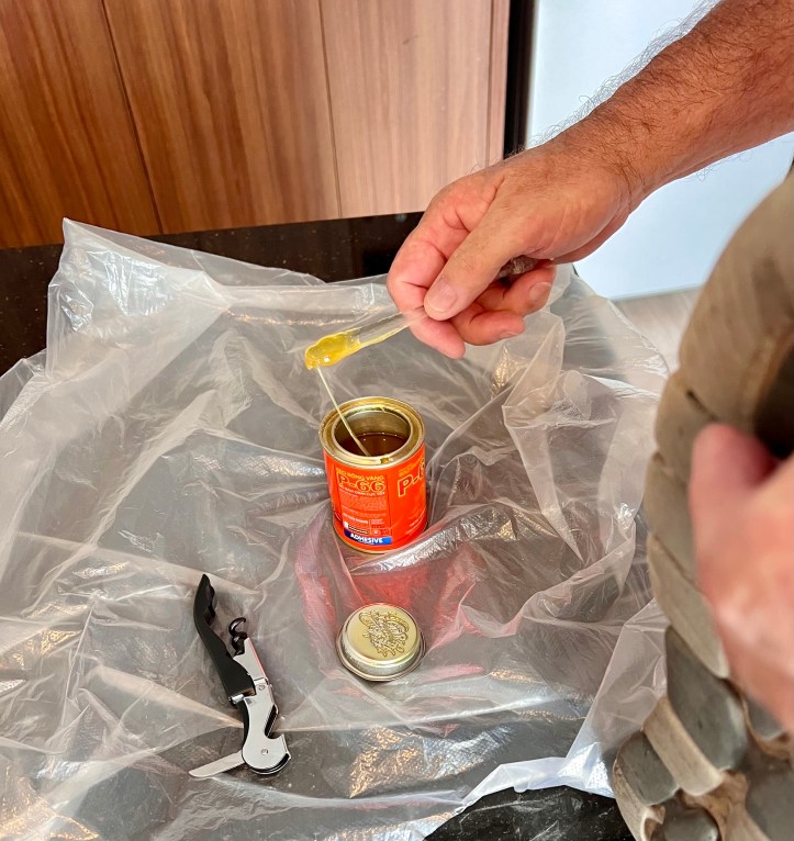 Once back at our hotel, to open the can of glue, Mick used our only sharp implement – a bottle opener we bought in Dalat, as travelling with hand luggage meant his pocket knife was not allowed on this trip. Anyway, the bottle opener did the trick. As soon as he got a whiff of the contents of the tin, he knew he was onto the right stuff. He had to use a complimentary tooth brush to paint the glue onto his shoe.