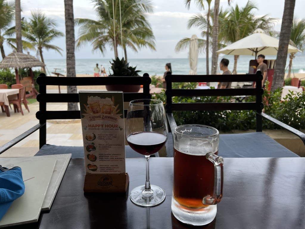 The brewhouse is set on the beach front, and interesting to us there seem to be no flies or flying insects. While there was no IPA beer for Mick to taste, he did try the Louisiane Red (28 IBU) and their Dark Lager (23 IBU). The beers cost 105,000VND each (or $7AUD). The beers are made using malt from Australia and hops from New Zealand.