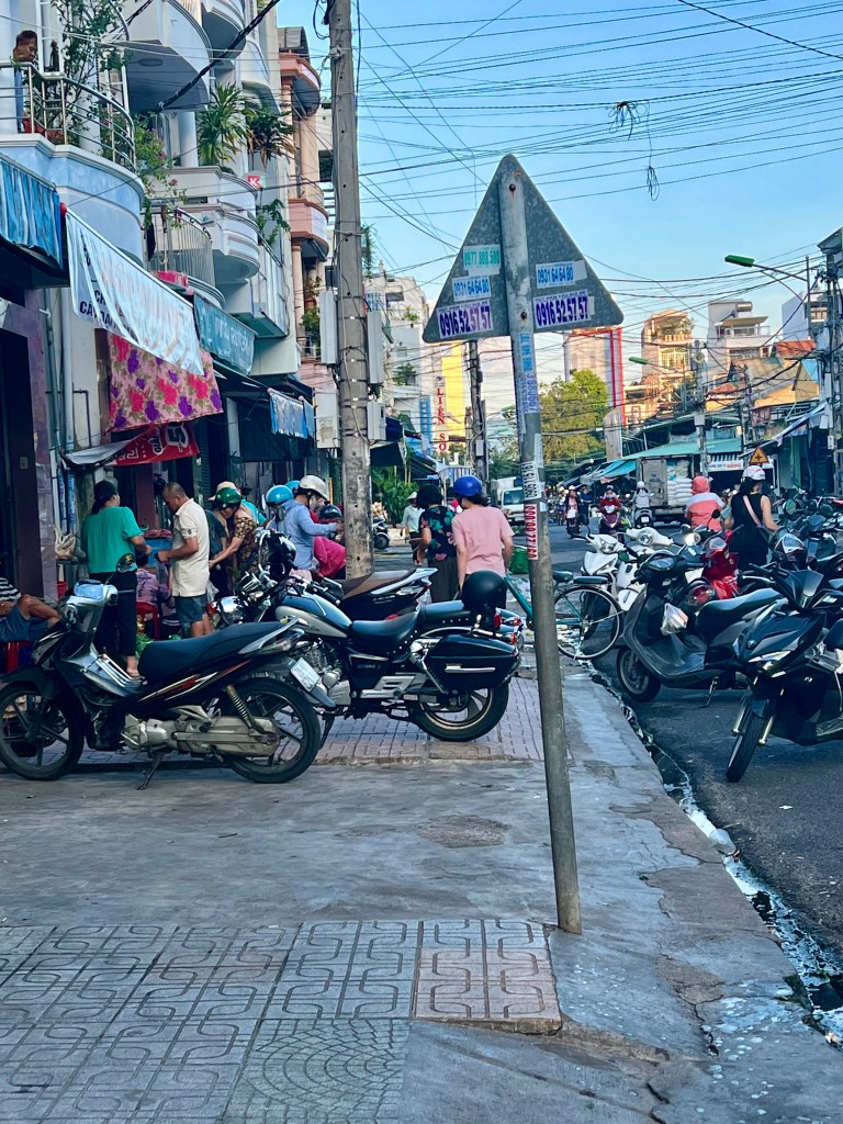 I passed another sidewalk business. Just as in many cities, businesses selling similar things can be found near each other, like furniture stores and car retailers, so it is true in Vietnam. Often the street stalls that are side by side are selling exactly the same green vegetables or fruit.