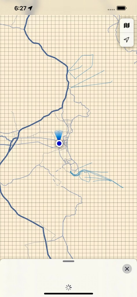 This image is all I could get to help me find out where I was this morning, and I was really wishing I had access to Mick’s Maps, but he was still in bed.