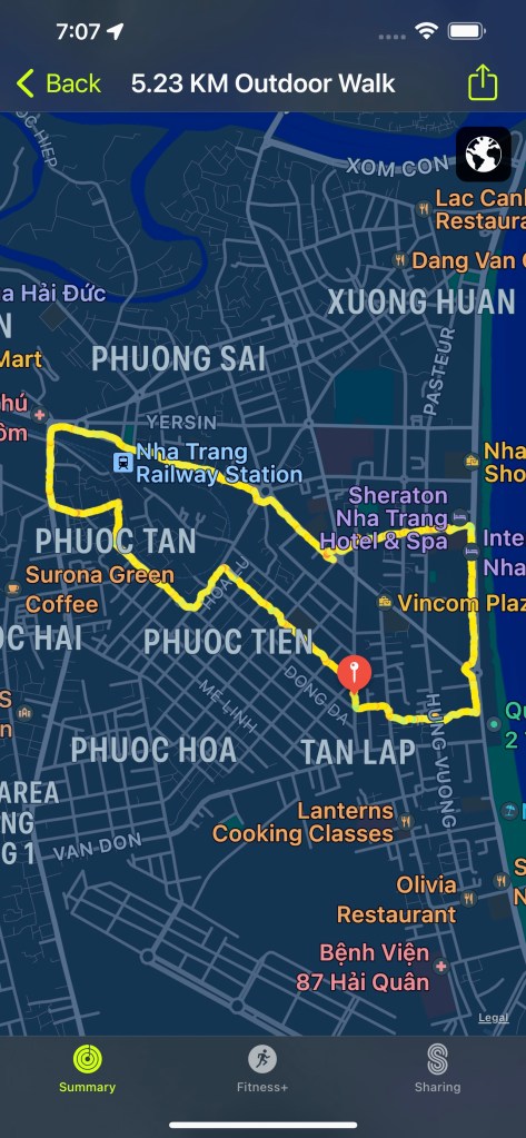 Once back at our hotel I looked at my phone to see where I had been. I did not walk my normal 6km, but once I got a whiff of where I had to go – I was not deviating.
