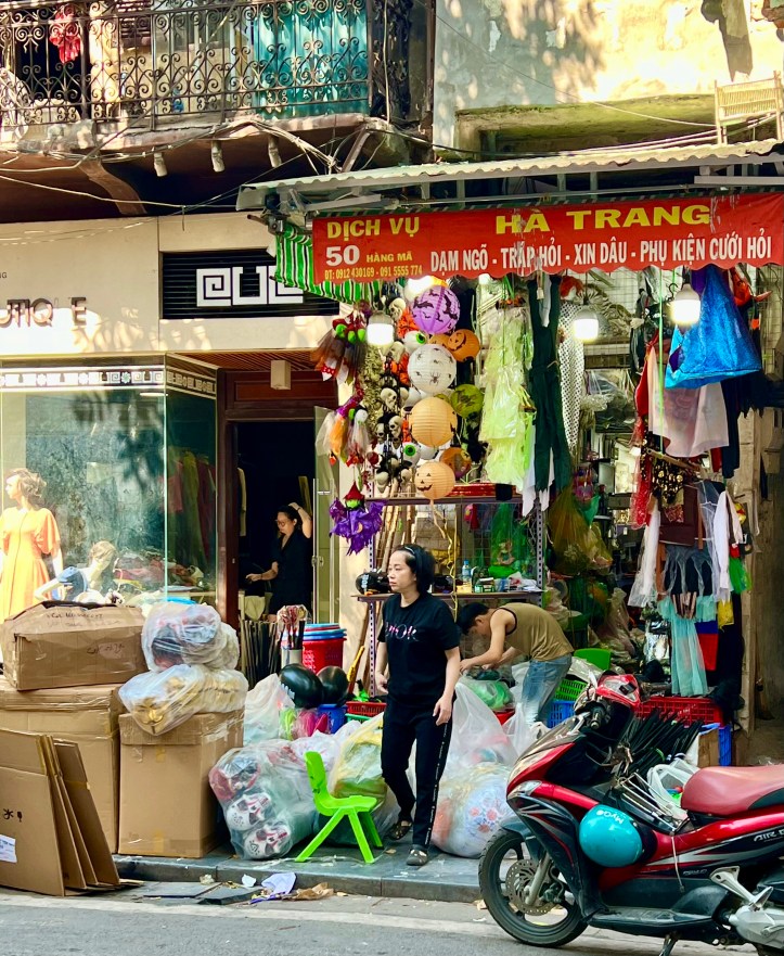 We had spotted many shops like this selling all sorts of gear for Halloween. Obviously Halloween is a big festival here in Vietnam. Mick wondered what the little shop would now sell. We did not need to wait too long before we found out; a few metres further along we saw these!