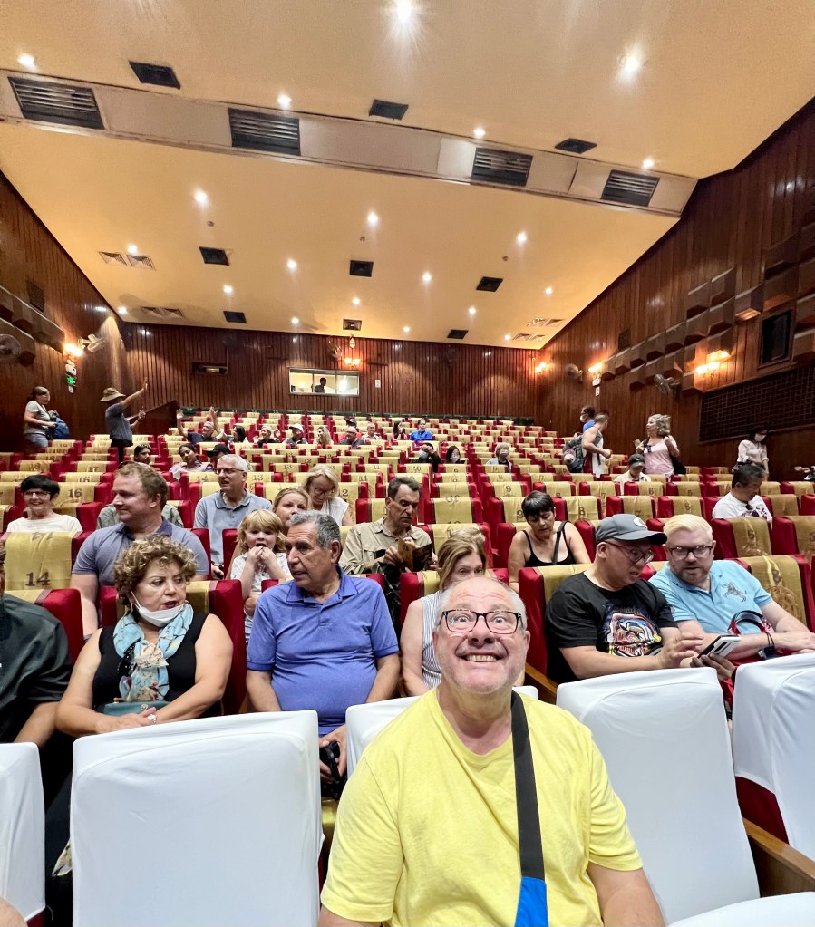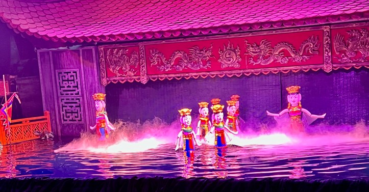 During the afternoon we attended a performance at the Thang Long Water Puppet Theatre. To be honest, Mick wasn’t keen, but I twisted his arm. This is a ‘must-see’ in Hanoi. Apparently! Tickets for the best seats in the house were 200,000 VND each (or ~$13 AUD), for a 50 minute show.