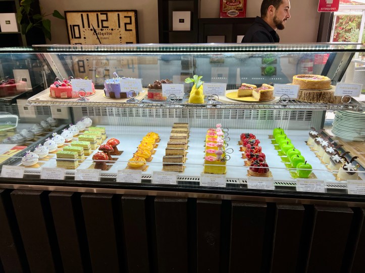 Here they make beautiful French pastries, which most of us resisted with our coffee because we had a booking for a 5 course degustation lunch – in 20 minutes time. We couldn’t resit them fully however – and selected one of these each as a ‘take away’ for another time.