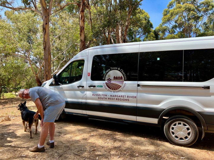 We were collected at our front door by Stuart from Busselton Tours & Charters around 9.45am. Our son had met Stuart through him bringing wine tour groups to the winery where our son worked. We were the only people on this tour for today, and our son had selected the wineries that he wanted to visit – five in total, which Stuart had thought was a bit optimistic, when we also had to fit in time for some lunch. But, as it turned out, we visited six, all in the cause of research of course.