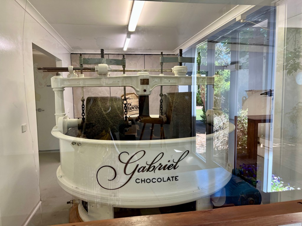 The meals were very good, and we must have eaten them too quickly, because we were way ahead of schedule. Stuart suggested we visit a chocolate outlet nearby, which Lucy and I thought was a great idea.