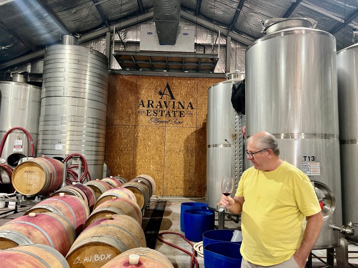 What was wonderful about our visit here today was the chance to go behind the scenes and meet the winemaker (Ryan) and some of his team. Ryan is a friend of our son’s, and he treated us to samples of his wines that are still in the barrels, almost ready for bottling.