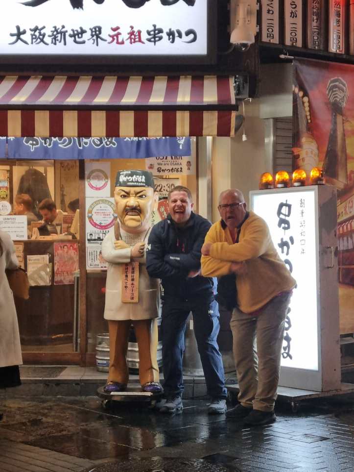 They visited Namba, which I read is a “high-energy entertainment district” – famous in Osaka for its small izakaya bars which line an alley behind a Zen temple, where lots of frivolity and fun was had.
