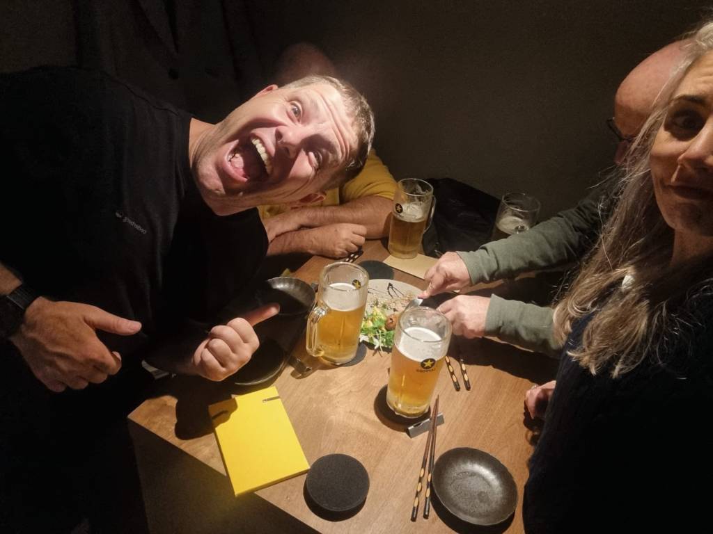 Bernie has been to Osaka before, and one of his most vivid memories of the city was of an enormous waving crab, used to advertise a restaurant specialising in crab – which figures. He reckons the 3-metre tall, air-filled plastic crab would flail its legs around in an attempt to attract people, but in most cases it frightened the life out of them. But after mentioning this story, the group went on the hunt for the waving crab and for dinner.