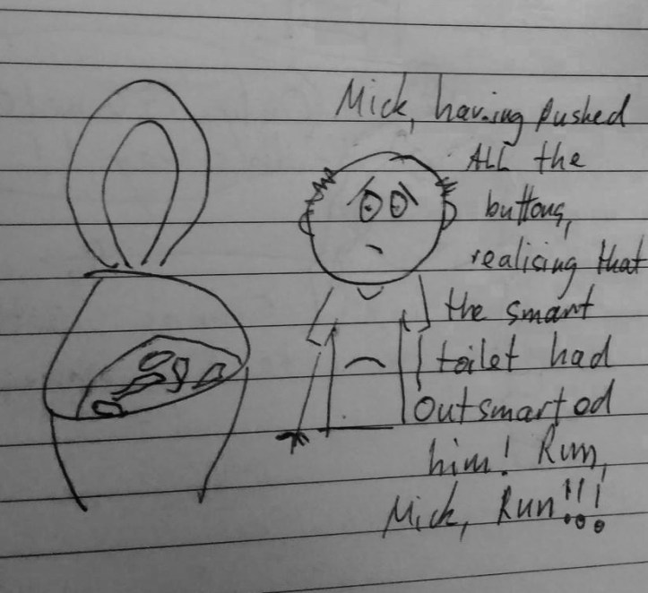On a more personal level, Mick admitted to me that he was having trouble with the Japanese plumbing; the smart toilets in particular. At first I was pleased when he told me there were smart toilets in the hotel as we are having one fitted in our new apartment in Brisbane. I am now a little worried because of this…..