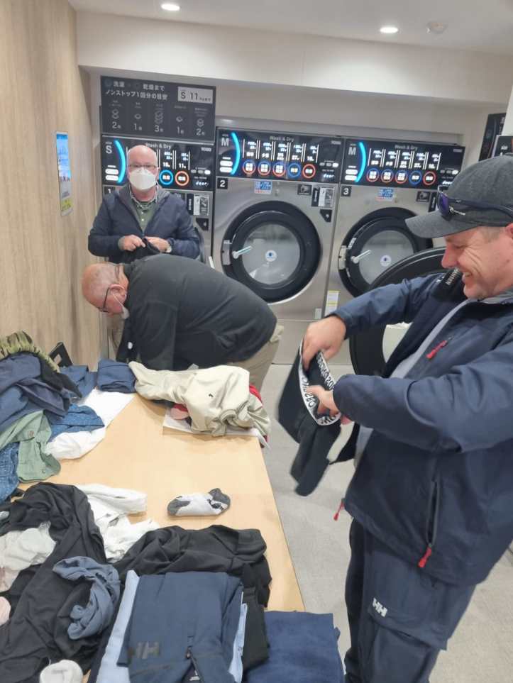 None of them could understand the machines, so they were very grateful when a woman came in to do some washing and gave them a ‘crash’ course – 50 minutes for $9. They are now set for another week.
