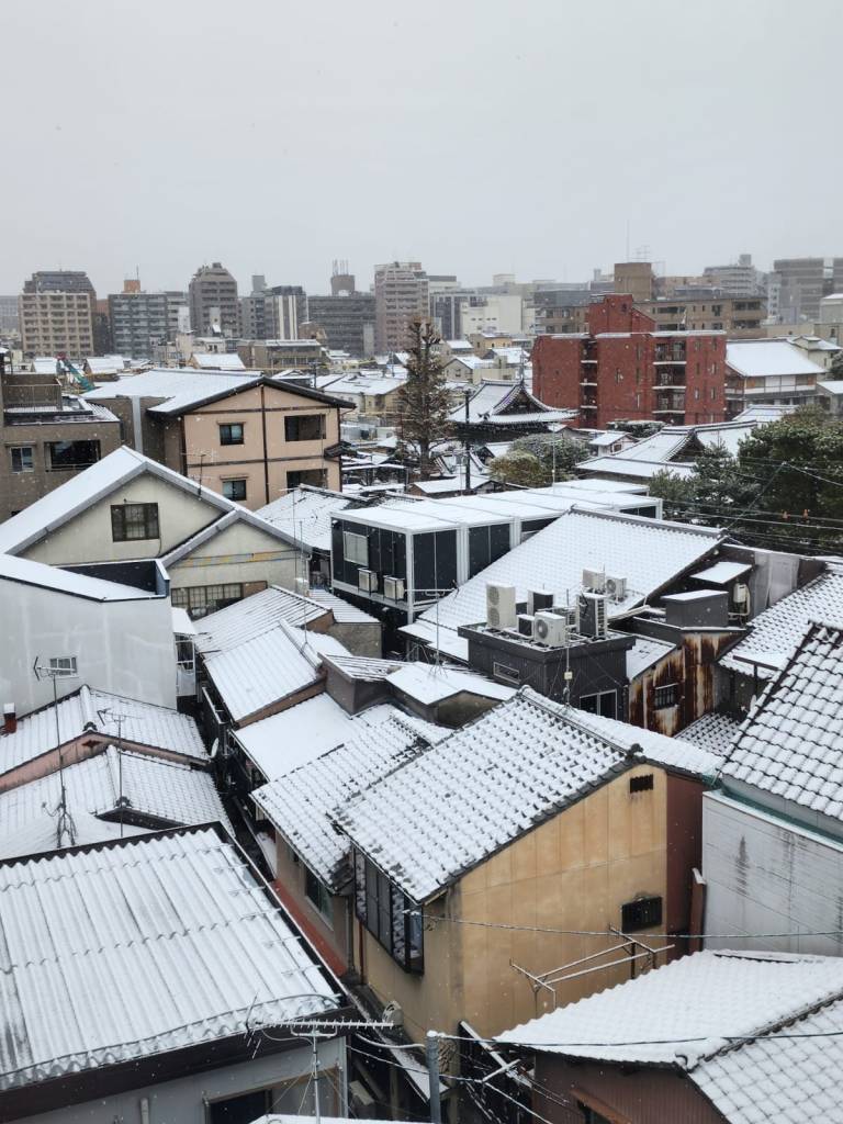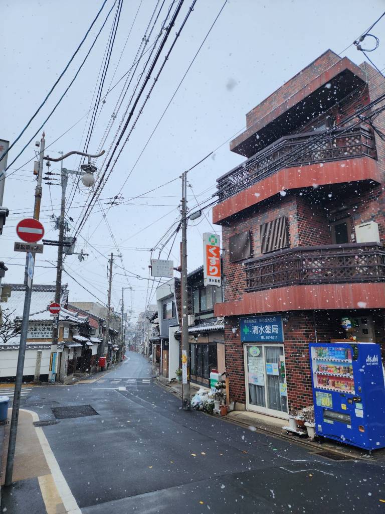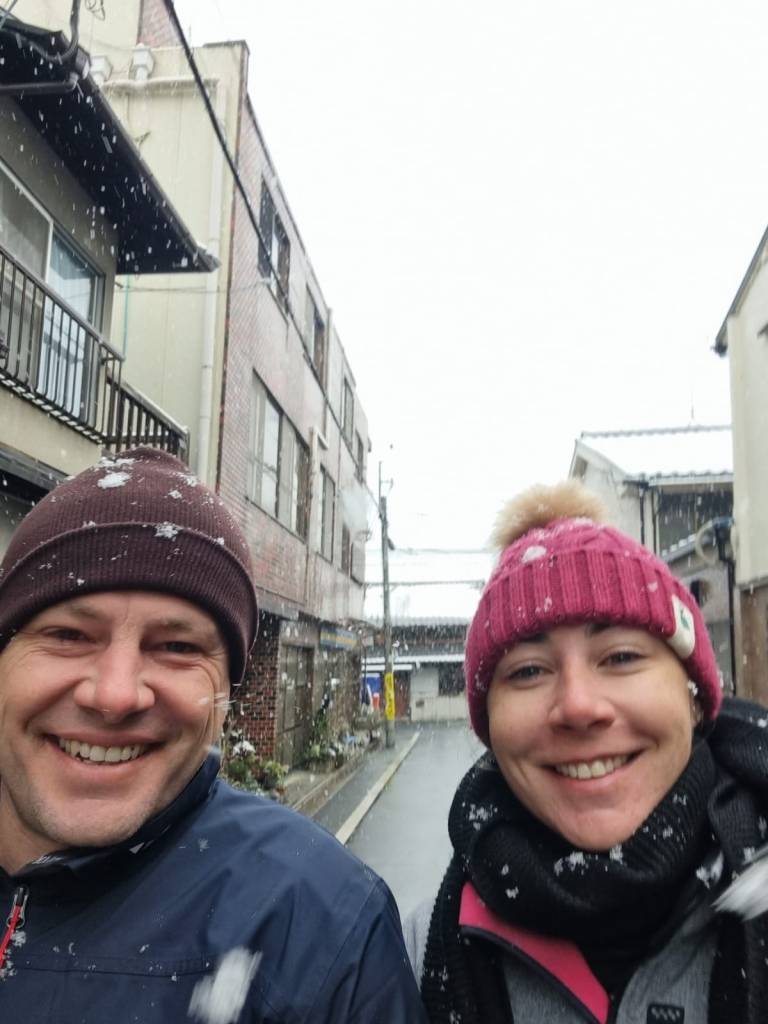 This morning they woke up to a covering of snow in Kyoto. It was very cold but the city looked beautiful. And for kids who have spent most of their lives in outback NSW, it was beautiful.