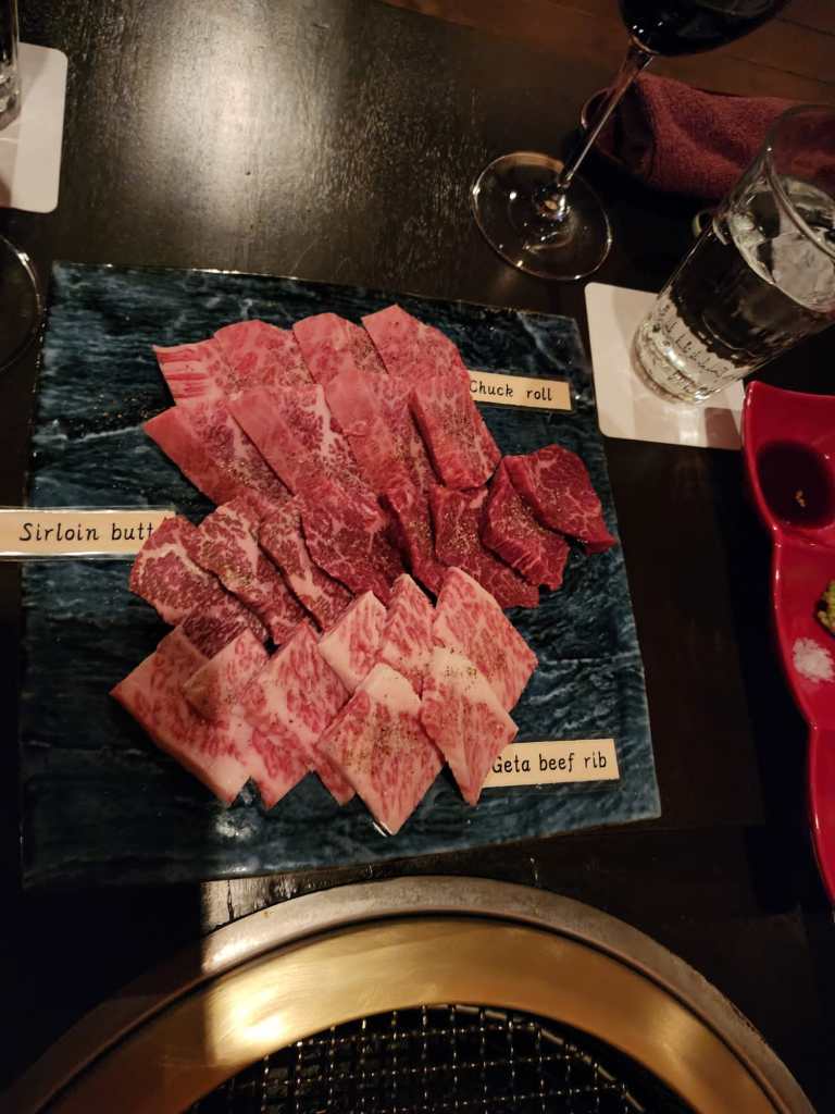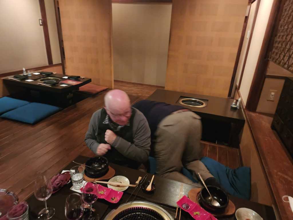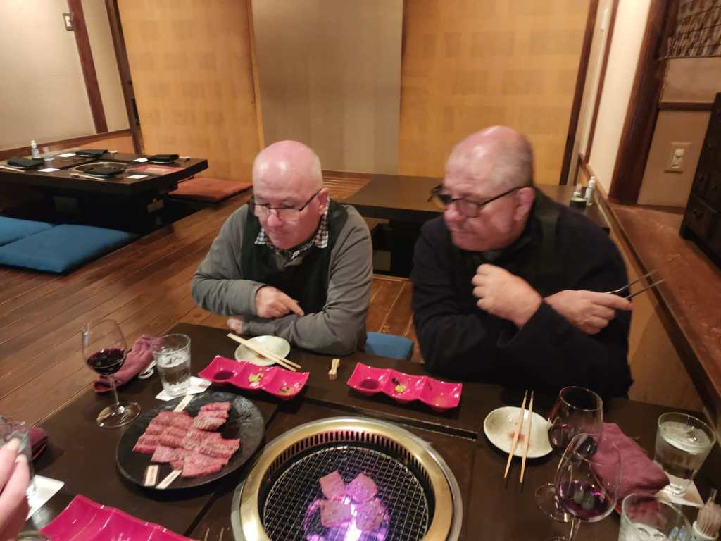 For their last night in Kyoto they found a great restaurant – Gion Karuku BBQ Wagyu Beef. The table was very low and a bit tricky for Mick to navigate, but the set menu they chose included some of the finest beef in the world. They had 7 courses downstairs before heading upstairs for dessert – they all thought it was amazing.