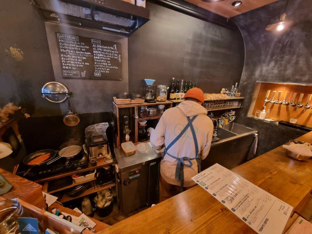 For dinner they found a very small Okonomiyaki restuarant that seated only the four of them. They looked pretty happy.