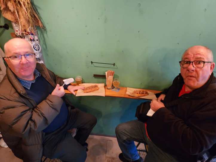 Luckily they were able to find a bar where they could have something to eat for a late lunch.
