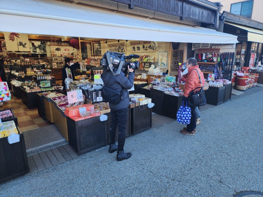 Shortly after stepping out to explore Takayama, Mick was approached by this local TV crew who asked to interview him. They were at the Miyagawa Morning Markets. I’m unsure what Mick told them – as he has about 10 words in Japanese.