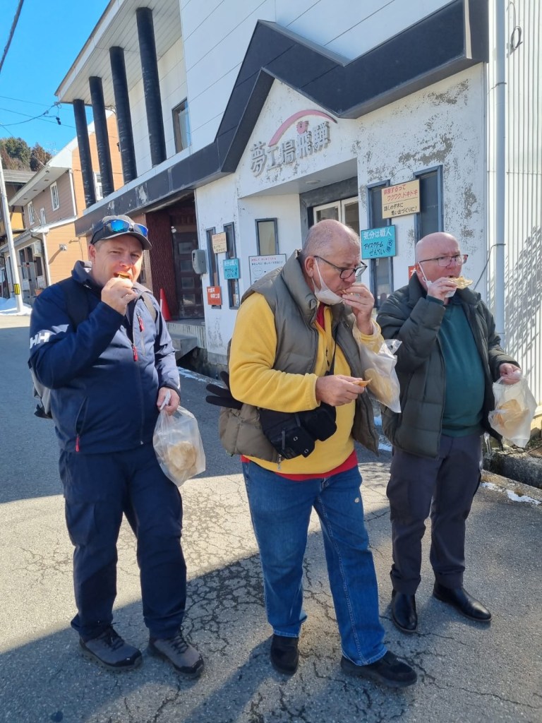 Their next destination was to a rice cracker factory, and thankfully they were under much closer supervision from the employees who taught them how to make crackers using the byproducts of another famous Japanese product – sake.