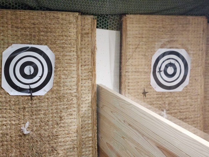 The museum they visited gave them the chance to actually throw Ninja Stars, and it appears that both (older) boys were excellent.