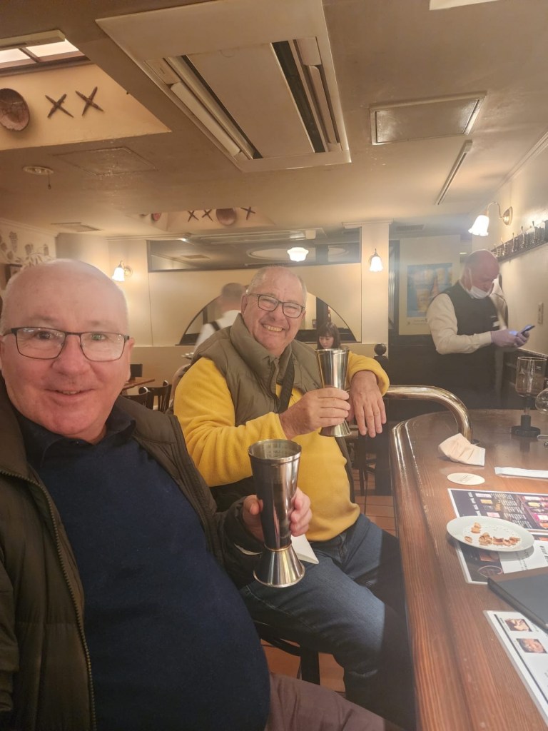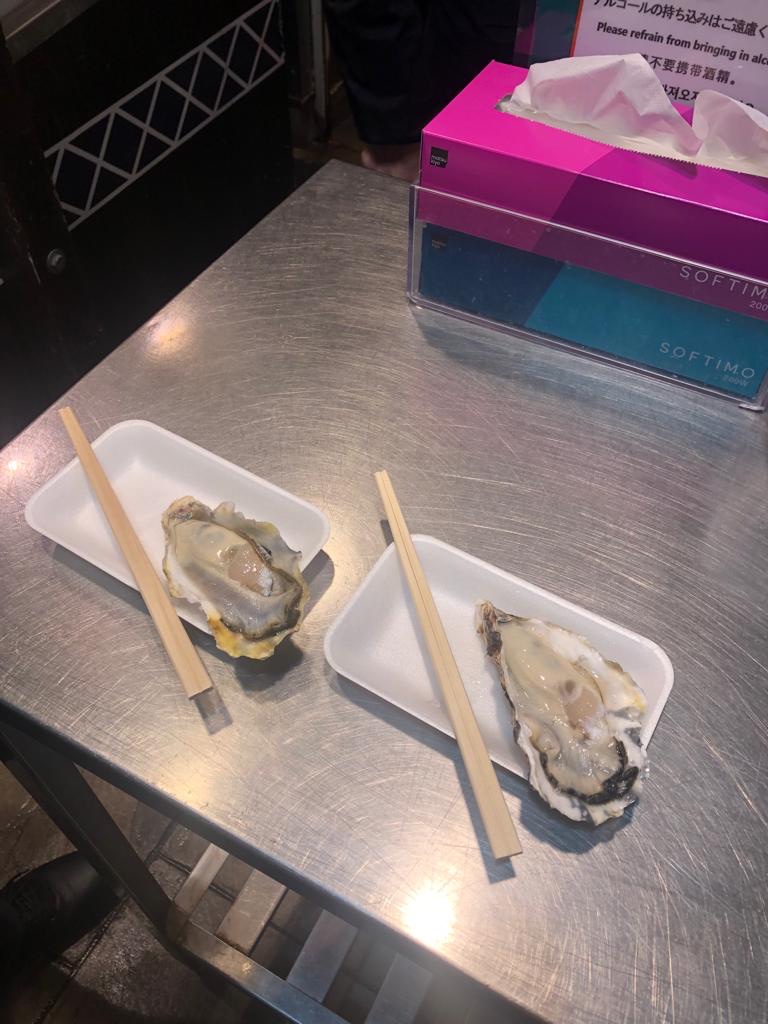 As expected, Mick and Bernie visited the fish markets where Tom and Emma had been yesterday, and they had a ball (not really – here they ate oysters, eel and loach fish). They loved the seafood saying it was “Oishii“.