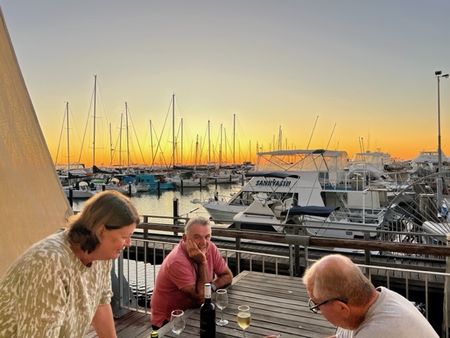 We hadn’t realised how hungry we were until we saw the menu. Mick and Derek decided tot share a seafood platter while Helen had fish and chips and I had mussels in a coconut chilli sauce, which did become quite messy, but I will save you the details.