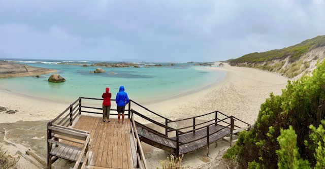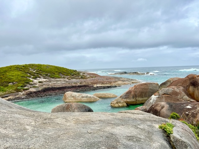 Located only a few kilometres out of Denmark, there is a very popular tourist attraction – known for its natural beauty. Green Pools is located on the edge of William Bay. It is thought to be one of Australia’s most beautiful beaches, and on most days the water takes on a green hue. Today, with the rain, it wasn’t at its best, but it was still spectcular.
