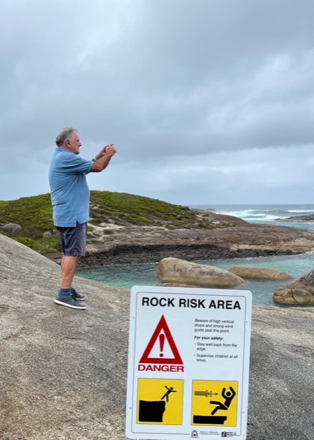 Elephant Rocks are located a few hundred metres around from Green Pools. Mick, Derek and I went off to explore them while Helen stayed dry in the car. Derek had promised Helen he would get some nice photos for her so she did not feel as though she had missed out. I had to take this photo of him to show her just how seriously he took the task.