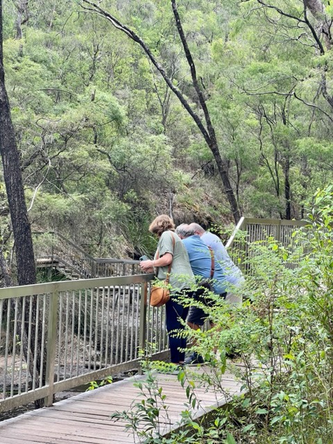 Helen, Derek and Mick were trying to spot some marron in the pooled water alongside the waterfall. There was certainly less water here today than during our last visit.