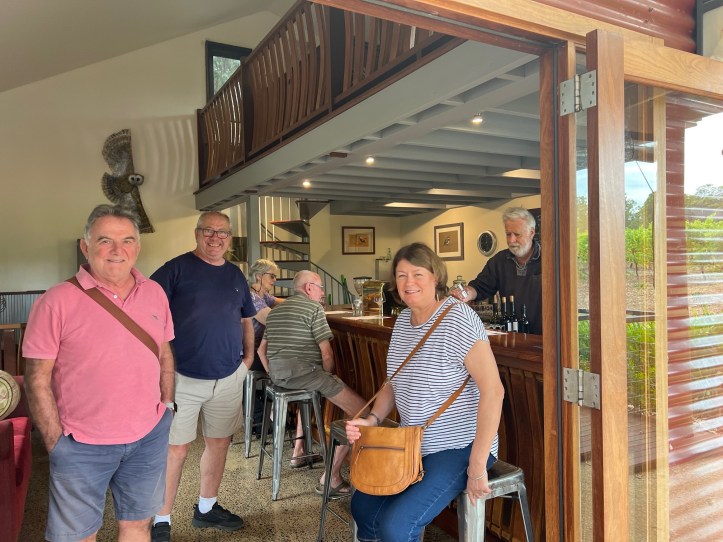 Then we drove on to Edward’s favourite, family-run winery in the area – Firetail. We thought we’d go for a short tasting, but after almost an hour I had to make noises about it being time for lunch. Rob, the owner, was in for a chat. And he and Edward have had many a chat about his wines. Edward is a huge fan of his 2013 Semillon, and we left with a botttle of this for him – a gift from Rob as a farewell present.